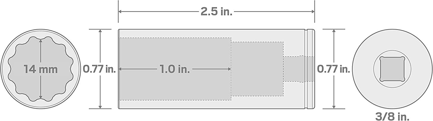 14mm 12 PT Point Remover Wrench MINI BMW Spark Plug Socket Thin Wall 3/8″ Drive