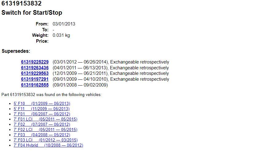 Start stop button for BMW Applicable models: For BMW 5/6/7 Series F01 F02 F10 F11 F12 2009-13 with NO AUTO OFF